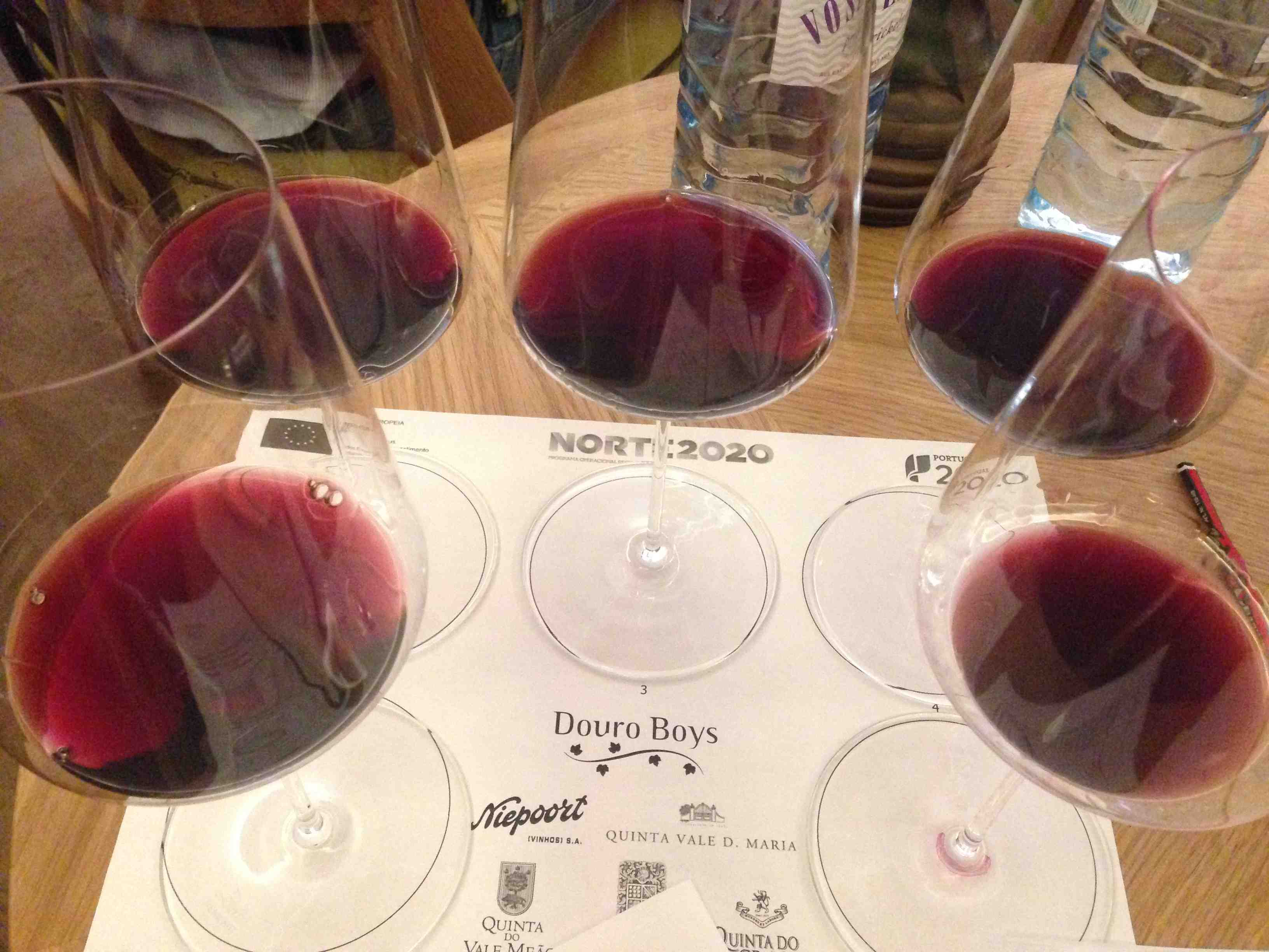 Diese trockenen Weine, vor allem deren Qualität bekannter zu machen ist seit rund eineinhalb Jahrzehnten das Ziel der Douro Boys. Die Douro Boys sind fünf bekannte Weingüter: Niepoort, Quinta Vale D. Maria, Quinta do Vallado, Quinta do Vale Meão und Quinta do Crasto. Am 18. Januar stellten sie in der Münchner Weinbar Grapes, neben einigen Portweinen jeweils drei ihrer trockene Stillweine vor. Repräsentiert wurden diese Weingüter durch Dirk van der Niepoort, Francisca van Zeller, João Roquette Álvares Ribeiro, Francisco Olazabal und Tómas Roquette, alle aus den jeweiligen Eigentümerfamilien stammend (von links im Bild).