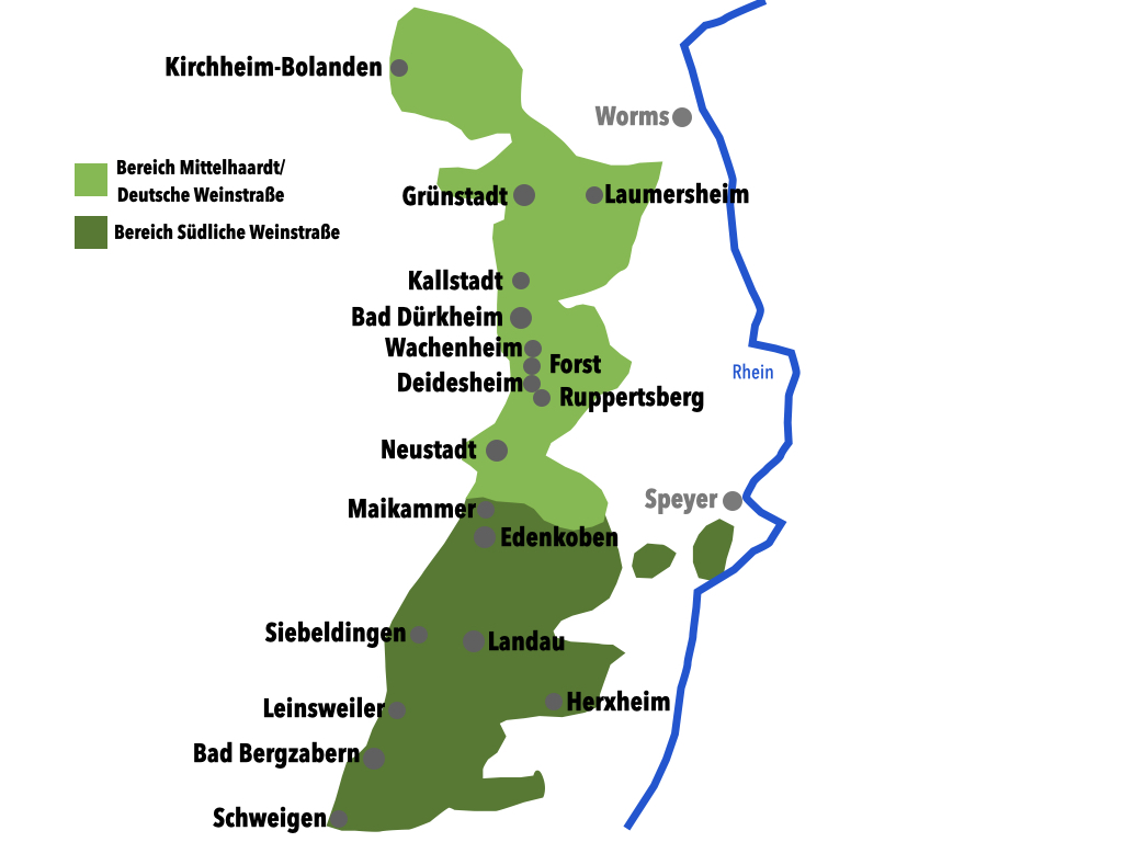 | Orte | Grünstadt, Herxheim, Kallstadt, Bad Dürkheim, Wachenheim, Forst, Deidesheim, Neustadt, Edenkoben, Siebeldingen, Leinsweiler, Klingenmünster, Bad Bergzabern, Schweigen |