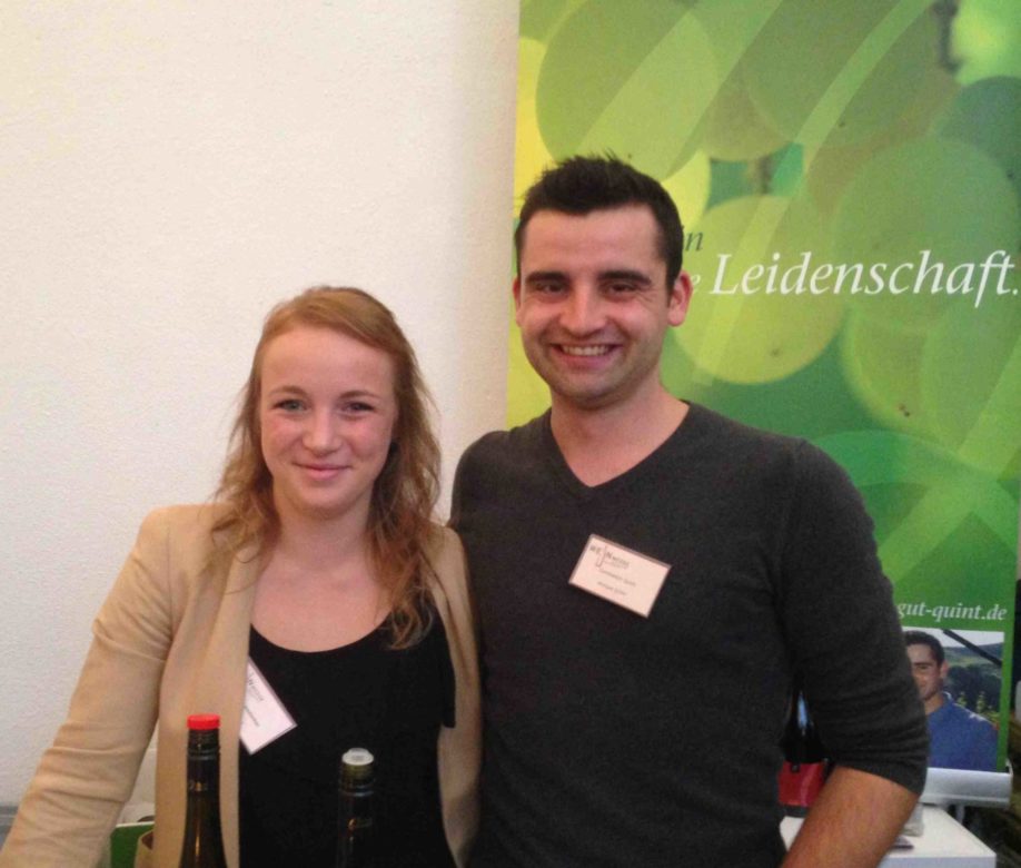 Zwei Rieslinge haben wir verkostet, der erste, ein Riesling 2016 (€ 5,50), dessen Trauben auf kalkreichem Boden gewachsen waren, erwies sich als wirklich guter sortentypischer Rieslings-Gutswein, frisch, mit viel Zitrus, runder Säure, gut in Balance mit der Restsüsse und feinem mineralischem Abgang . Sehr gut der Riesling vom Rotliegenden 2016 (€ 8,90), mit guter Struktur, schönem Körper, kräuterig und mineralisch sowie einem guten Abgang. Da sich leider kein anderer Riesling im zum Münchner Weinherbst mitgebrachten Portfolio des Weinguts befand, haben wir noch den Sauvignon Blanc 2016 (€ 6,90) und den Weißburgunder vom Fischerpfad 2016 (€ 8,90) verkostet. Beides sehr gute sortentypische Weine, mit gutem bis sehr gutem Abgang. Der Sauvignon mit einer sehr ansprechenden, frischen Säure und spürbarem Restzucker, der Weißburgunder straffer im Charakter.